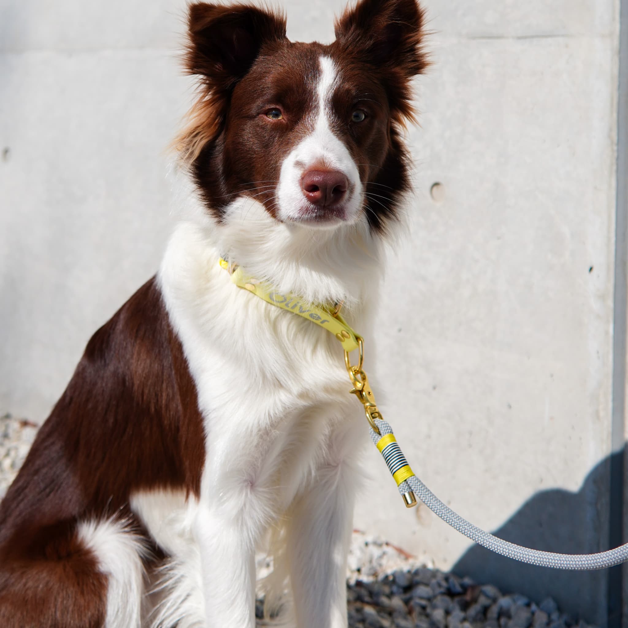 鮮やかなイエローと落ち着いたグレーが織りなす「ハニービー (Honeybee)」。暖かな春の陽気を楽しむような、軽やかでワクワクする気持ちをイメージした配色が特徴です。お散歩やお出かけが楽しくなるような明るいデザインで、春の自然と調和しながらも愛犬の存在を引き立てます。春の花咲く景色の中で、愛犬との特別なひとときをぜひ楽しんでください。