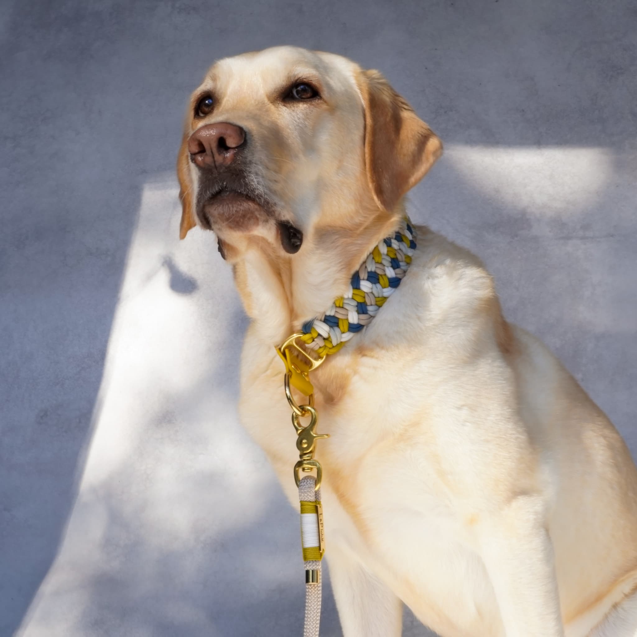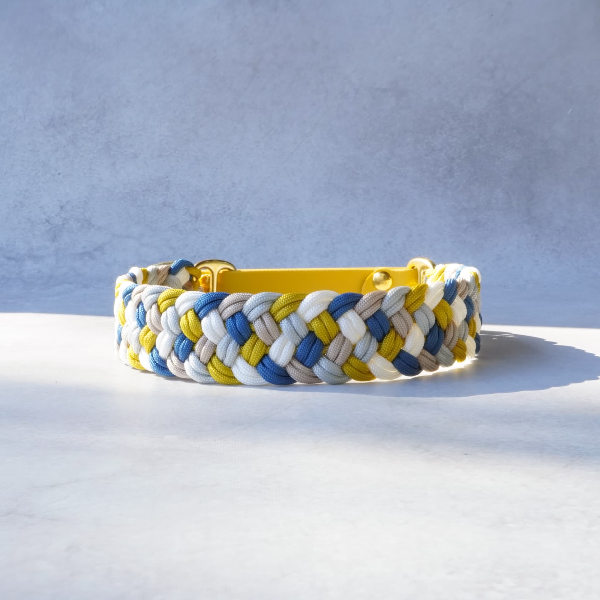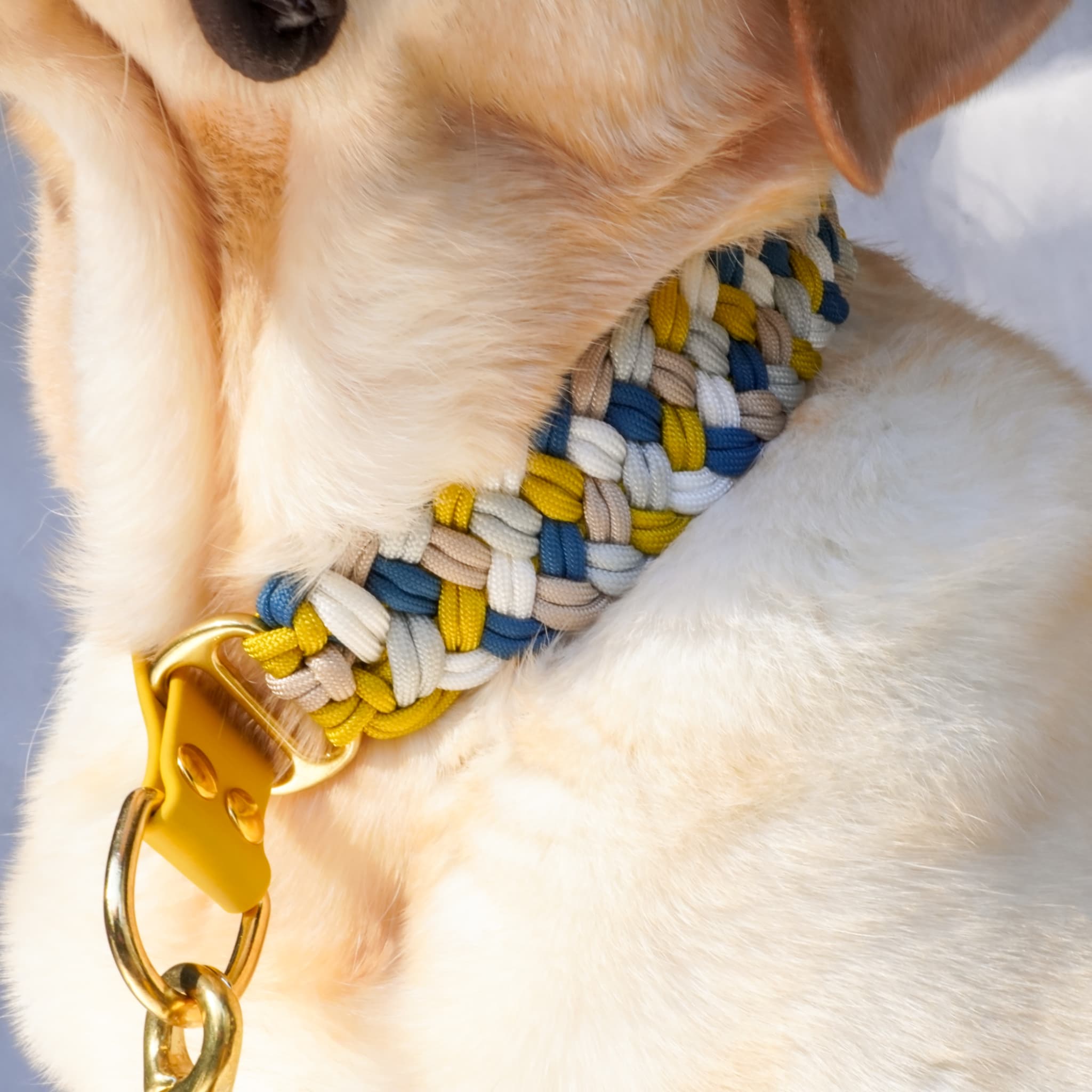 「ヘリックス」デザインは、シンガポールにあるヘリックス橋の美しい螺旋構造からインスピレーションを得て名付けられました。このデザインは、5本のパラコードが織りなすモザイク模様が特徴で、見た目にも調和のとれた美しさがあります。軽くて柔らかな作りは、シニア犬や首に優しい装着感を求めるワンちゃんにぴったりです。