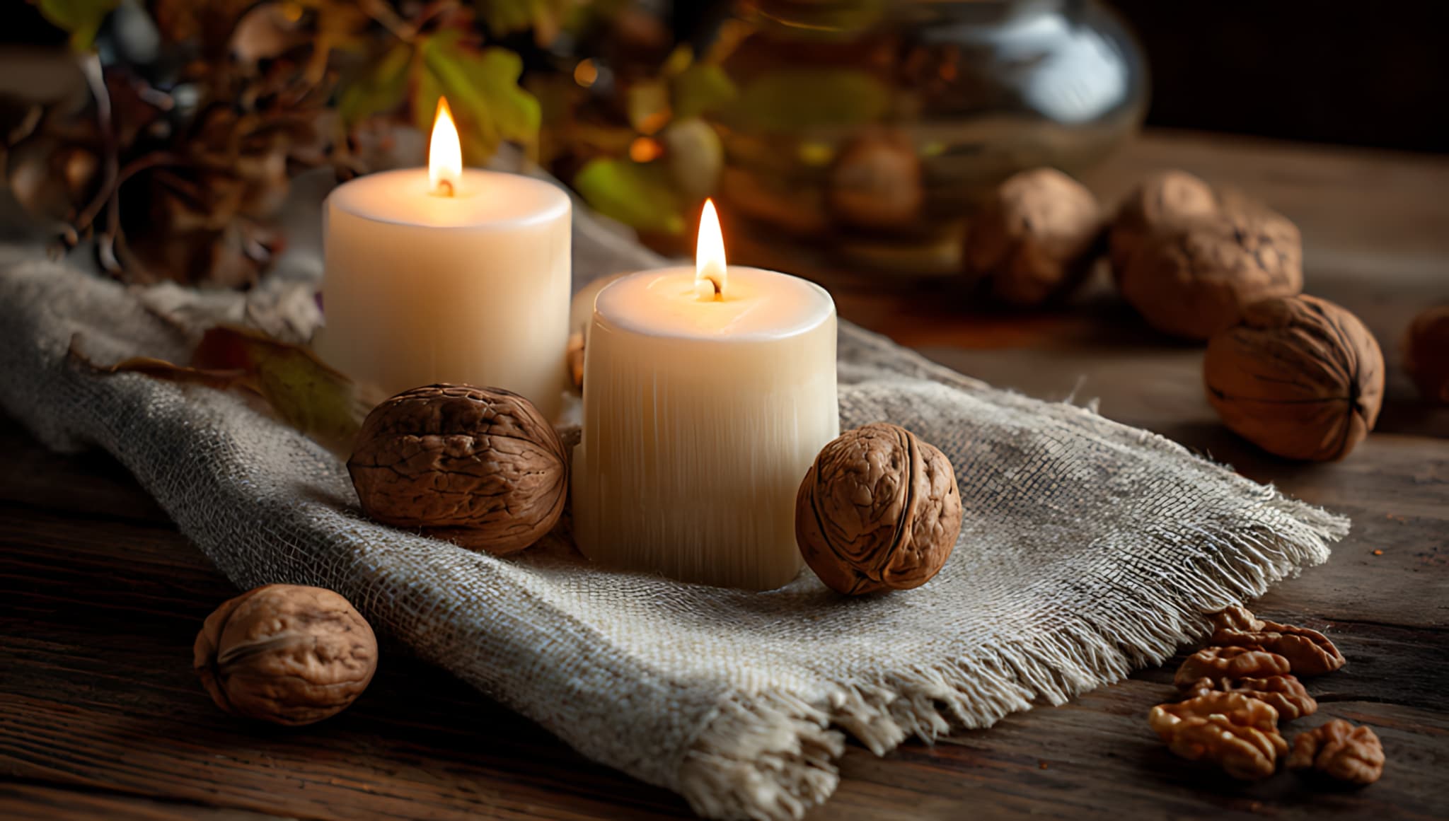 ヘーゼルナッツブラウンとバニラの飾りコードを合わせた「くるみ」。