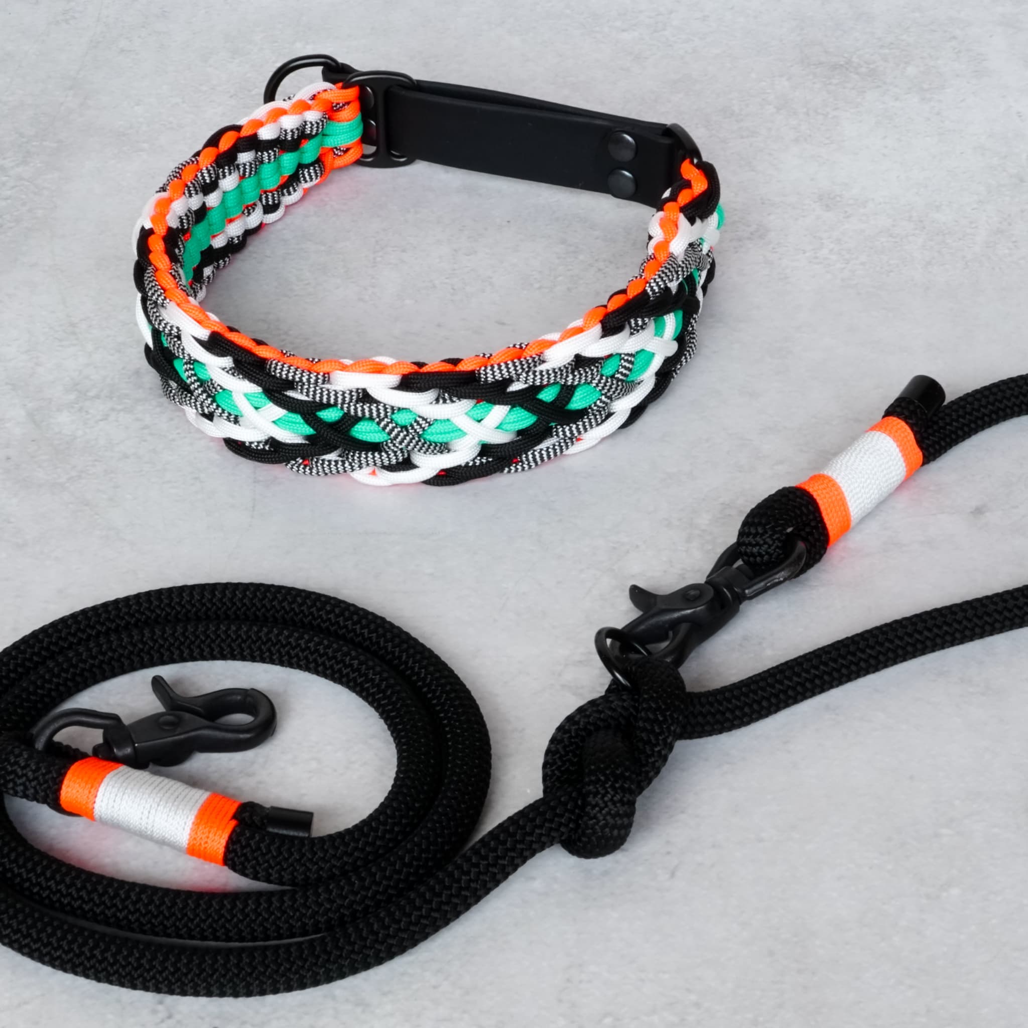 エルトピラボのオリジナルパラコード首輪に、お揃いのロープリードがセットになりました。